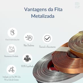 Fita Metalizada Autocolante Revestimento Decorativo 1 Metro Cor: Dourada Fita Metalizada Autocolante para Decoração - 1 Metro x 2 cm Transforme seu ambiente com estilo e praticidade Medidas do produto: Comprimento: 1 metro Largura: 2 cm Espessura: 1,2 mm Material: ABS com acabamento metalizado de alta qualidade Pronta para Aplicar Nossas fitas já vão com fita dupla face aplicada na parte traseira. São autocolantes, fáceis de instalar e ideais para quem deseja renovar o ambiente de forma prática e sem sujeira. Vantagens do Produto Acabamento sofisticado: Brilho metalizado moderno, resistente e durável Instalação rápida e simples: Basta remover a película da fita dupla face e aplicar Sem obra e sem sujeira: Aplicação limpa, sem necessidade de ferramentas ou profissionais Versatilidade de uso: Pode ser Utilizado em paredes, móveis, espelhos, painéis ripados, azulejos e muito mais Fácil manutenção: Lavável com pano úmido e detergente neutro Alta aderência: Compatível também com cola PU, Super Bonder, cola de contato ou silicone, se desejar maior fixação Indicações de Uso Indicada para aplicação em diversos ambientes e superfícies, como: Quartos Salas Cozinhas Banheiros Escritórios Móveis e espelhos Revestimentos de parede Projetos de decoração DIY faça você mesmo A fita já vem com adesivo aplicado Sim. Ela já vem com fita dupla face colada na parte de trás, pronta para aplicação. Vocês têm outras larguras disponíveis Não. Todas as nossas fitas possuem 2 cm de largura. Quais comprimentos estão disponíveis Trabalhamos com as seguintes opções: 1 metro, 5 metros, 10 metros, 15 metros, 20 metros e 30 metros. Há outras cores disponíveis Sim. Oferecemos nas cores dourada, rose e prata. A fita pode ser Utilizado em superfícies curvas, como espelhos redondos Não recomendamos para superfícies curvas. O produto é maleável, mas não é flexível o suficiente para contornar espelhos redondos. É resistente a produtos de limpeza com solvente Não. Recomendamos limpeza apenas com pano úmido e sabão neutro. Existe a versão em aço escovado Não. Trabalhamos apenas com acabamento metalizado brilhante. Qualidade Garantida por Lujp Decorações Somos especialistas em revestimentos e elementos 3D decorativos. Nosso compromisso é entregar produtos de alto padrão que transformam espaços com personalidade, beleza e inovação. Atendemos com agilidade, transparência e respeito ao cliente. Marca: Não Informado