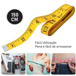 Fita Métrica 150m Costura Corporal Cintura Braço Tecido Fita Métrica de 150cm comprimento x 2cm Largura Flexível, Com marcações em centímetro e milimetro Ideal para medir tecidos, partes corporais, móveis, itens pequenos, distância entre outras funções. Cores Marca: Não Informado