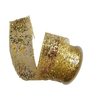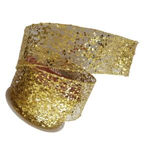 Fita Decorativa de Natal aramada de tela com lantejoulas douradas, Rolo com 9,14m de comprimento X 6.50cm de largura.