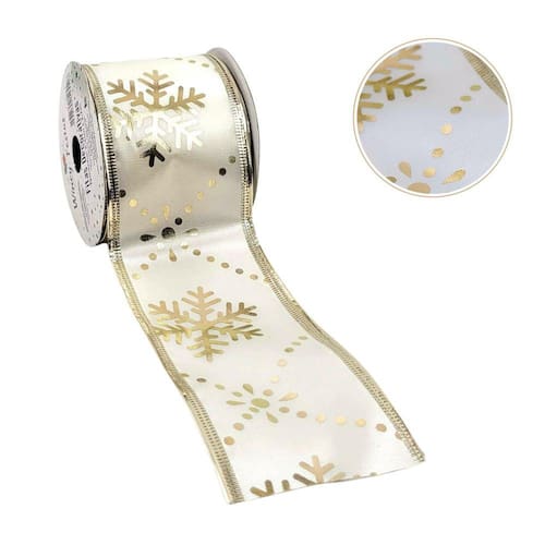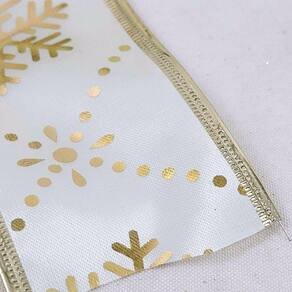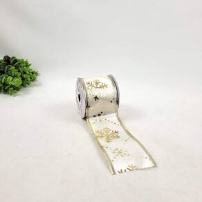 Produzida com materiais de qualidade, a Fita Natalina Flocos é resistente para enfrentar a temporada festiva. Seu comprimento é de 2,7m e a largura é de 6,3cm, pesando aproximadamente 55g. Ela é feita de tecido aramado nas cores branco e dourado, adicionando sofisticação e elegância à sua decoração.