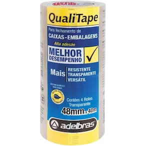 - Fita para embalagem Qualitape. - Fita para empacotamento, lacração de pacotes, fechamento de caixas de papelão, emendas e reforços, junções, proteção, marcação e diferenciação, uso geral na construção civil. - Ref: 0811000018. - Transparente. - Adelbras.