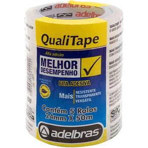 A Fita Adesiva 24mm x 50m Transparente Adelbras é ideal para usos em fechamento de caixas e embalagens, identificações, emendas e reforços. Possui alta adesão deixando-o com maior desempenho em sua utilização e mais resistente ao frio, ao calor e aos raios U.V, além de ser mais transparente, a fita não amarela com o tempo. Composição: Filme de polipropileno e adesivo acrílico. Contém 1 rolo 24 mm x 50 m. Pacote contém 5 unidades