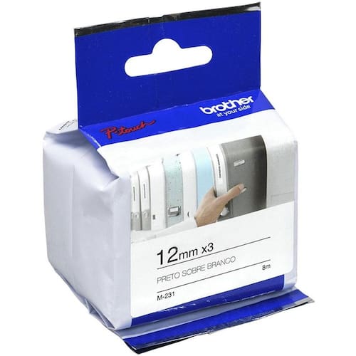 - 3 unidades: Fita M231- preto sobre branco de 12mm x 8m