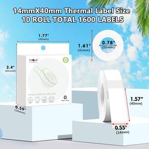 - Fita térmica para etiquetar (1600 unidades) - Fita Aqua Label Maker 0,55 “X 1,57" (14 mm x 40 mm) - 160 fitas em cada rolo