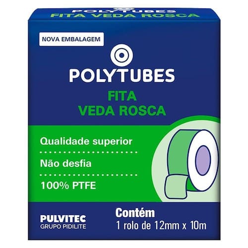FITA VEDA ROSCA é uma fita vedante não sinterizada, à base de resina de P.T.F.E. (PoliTretraFluorEtileno) 100%.Indicações de UsoA FITA VEDA ROSCA foi desenvolvida para toda e qualquer rosca de qualquer material que necessite de vedação, tais como: roscas e conexões de latão, cobre, aço, plásticos em geral, etc.Preparação das SuperfíciesA FITA VEDA ROSCA deverá ser aplicada em superfícies limpas e secas.Modo de Usar:Aplicar de 4 a 5 voltas da fita sobre os filetes da rosca (sempre no sentido do enrolamento). No caso de tubulações galvanizadas, aplicar 8 ou mais voltas da fita sobre a rosca. Preparação do ProdutoNão é necessária qualquer preparação do produto.Equipamentos para AplicaçãoMãos.SecagemNão se aplica.RendimentoNão se aplica, já que é difícil saber bitolas e extensões da área a ser recoberta e vedada.Causas Prováveis de ProblemasNão se aplica.Segurança, Armazenagem, Manuseio, Tempo de Vida e FlamabilidadeO produto não é inflamável.Este tipo de material não necessita de locais apropriados para sua estocagem, já que não se deteriora. Desde que mantidas as condições indicadas acima, o produto possui validade de 2 anos a partir da data de sua fabricação.Este tempo de 2 anos é somente um tempo de validade dado pelo fabricante. Porém, a matéria prima P.T.F.E. não possui tempo de vida determinado.
