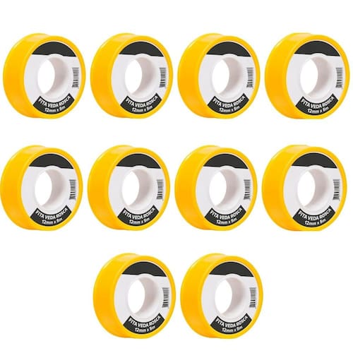 10 Rolos de Fita Veda Rosca 12mm x 5m