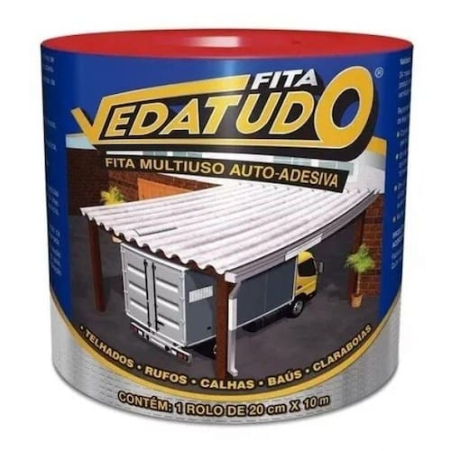 Fita autoadesiva multiuso à base de asfalto modificado, autoprotegida com filme de alumínio que permite sua exposição a intempéries e aos raios solares, sendo de fácil aplicação, na qual proporcionam medidas imediatas para solucionar problemas de gotejamento e vedações.