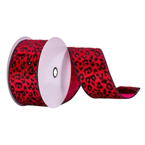 Fita Vickerman com estampa de leopardo vermelho de 2,5 polegadas x 10 jardas, fita de Natal sazonal para embrulho de presente, decoração de árvore