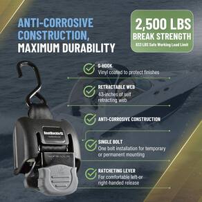 - Hook, Ratchet & Go: Chega de lidar com tiras longas batendo ao vento ou ficando emaranhadas. Estas tiras de amarração de popa apresentam um design retrátil que as mantém bem armazenadas quando não estiverem em uso.