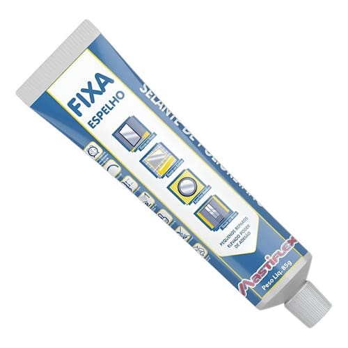 54374 - fixa espelho branco plus bisnaga 85g - mastiflex O fixa espelho mastiflex é um adesivo de poliuretano inerte para fixação de vidros e espelhos. Com alta adesividade em vários substratos como: concreto, metais, vidros e madeira. Por seu caráter não ácido, não causa manchas e distorções nos espelhos. Material de secagem rápida, para diversas aplicações de colagem. Produto cura ao entrar em contato com a umidade do ar formando um elastômero de alta resistência mecânica e a intempéries. O fixa espelho atende aos padrões de qualidade das diversas áreas de colagem de espelhos e vidros.