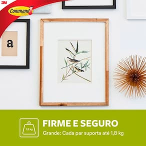 Fixa Quadros Adesivo Command Grande Ate 1,8kg 2 Unidades 3m Quantidade: 2 Unidades Material: Adesivo Capacidade Máxima: 1,8 Kg Uso: Interno e Externo Condição: Novo Os Adesivos Command Grande da 3M são a solução perfeita para quem busca uma forma prática e segura de fixar quadros e objetos decorativos na parede. Cada pacote contém duas unidades, suportando até 1,8 kg de peso, ideal para exibir suas obras de arte favoritas sem a necessidade de furar ou danificar a parede. Desenvolvidos com tecnologia avançada, os adesivos Command oferecem uma forte aderência e são facilmente removíveis, garantindo que suas superfícies fiquem limpas e intactas após a remoção. Eles são ideais para uso em casa, escritórios ou qualquer espaço que necessite de uma decoração personalizada. Com uma instalação simples e rápida, os adesivos podem ser aplicados em diversas superfícies, como pintura, madeira e azulejos. Após a aplicação, os quadros ficam estáveis e seguros, permitindo que você mude a decoração sempre que desejar, sem complicações. Escolha os Adesivos Command Grande da 3M para uma decoração moderna e prática, tendo a de qualidade de uma marca renomada.