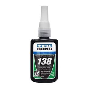 O adesivo TEKBOND 138 é um fixador químico com baixa viscosidade e alta resistência à desmontagem. Uma vez aplicado, impede a corrosão e vazamento do conjunto de fixação, é recomendado principalmente para fixação de peças cilíndricas como buchas, rolamentos, chavetas, hélices que necessitam de alta resistência à desmontagem. Elimina folga dentro de conjuntos já gastos.