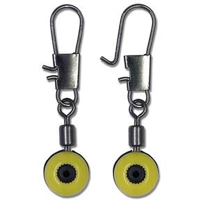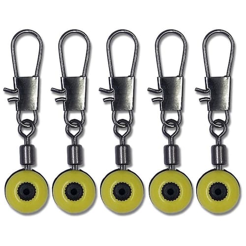 Características técnicas: - Fixador de bóia para pesca com girador snap e miçanga - Tamanho: P - Comprimento: 3cm - Composição: Aço e Polipropileno - Pacote com 5 unidades