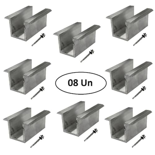 Fixador Grampo Intermediário Middle Clamp Tipo U Placa Painel Solar Alumínio e Inox Perfil Master Kit 08 Un Fixador Grampo Intermediário Middle Clamp Tipo U Placa Painel Solar Alumínio e Inox Fabricado em alumínio de alta resistência e durabilidade para todos os padrões climáticos, este fixador foi desenvolvido especialmente para fixar as placas na estrutura de sustentação dos painéis solares em vários tipos de telhados. Utilizando materiais não ferrozos é ideal para todo tipo de região, sendo resistente inclusive, à maresia do litoral.