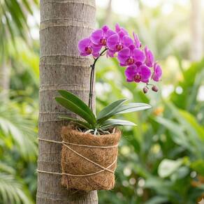 Valor e Enquadramento: Você está investindo na saúde a longo prazo de suas orquídeas. A fixação correta e a aeração da placa de fibra de coco garantem um florescimento mais robusto e duradouro.