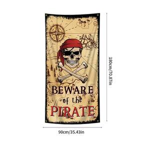 Material: poliéster Tamanho do produto: 90 cm/35,43 polegadas × 80 cm/70,87 polegadas Peso do produto: 110 g Apresenta uma caveira de pirata ousada com ossos cruzados, contra um fundo de mapa pirata vintage e o aviso “CUIDADO COM O PIRATA”, tornando-a perfeita para eventos com tema pirata. Feita de tecido de poliéster durável e de alta qualidade, garantindo que esta bandeira seja resistente ao desbotamento, leve e adequada para uso interno e externo. Com o tamanho de 90x180cm, é ideal para pendurar em quartos, festas temáticas de piratas, eventos ou como decoração exclusiva para espaços ao ar livre, como jardins e pátios. A bandeira não inclui um mastro, oferecendo a flexibilidade de exibi-la em paredes, cercas ou até mesmo com uma configuração personalizada em reuniões de piratas. Um complemento perfeito para aqueles que amam a história dos piratas, oferecendo um toque elegante e aventureiro a qualquer evento ou espaço doméstico.