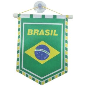 Bandeira produzida em tecido poliéster Medidas de 13,2 cm altura x 9,7 cm de largura Suporte para ventosa com 11,3 cm Cordão amarelo destacando o produto Corte à laser nas bordas Impressão digital Estampa em ambos os lados da flâmula Fabricada em poliéster leve e resistente Facilmente fixada no vidro do seu automóvel
