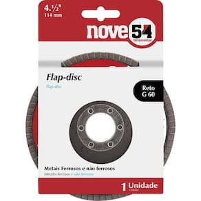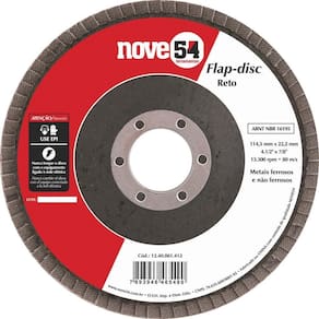 Conteúdo da embalagem1 Disco de desbaste/acabamento flap-discAplicações e dicas de usoIndicado para desbaste e acabamento em metais ferrosos e não ferrosos, como: alumínio, latão, ferro, aço, entre outros. Não indicado para aço inox.Destaques e diferenciaisPermite atividades de desbaste e acabamento ao mesmo tempo, eliminando a troca de discos. Proporciona menor vibração e ruído comparado com o disco de desbaste convencional. DETALHES TÉCNICOS Diâmetro externo do disco de desbaste/ acabamento flap-disc : 4.1/2 - 114 mm Diâmetro do furo do disco de desbaste/ acabamento flap-disc : 7/8 - 22,2 mm Grão: G 50 Tipo de costado: Fibra Tipo do perfil do disco de desbaste/acabamento flap-disc: Reto Tipo do grão abrasivo: Óxido de alumínio Rotação máxima rpm : 13300 rpm Norma de referência: ABNT NBR 15635 / ABNT NBR 16195