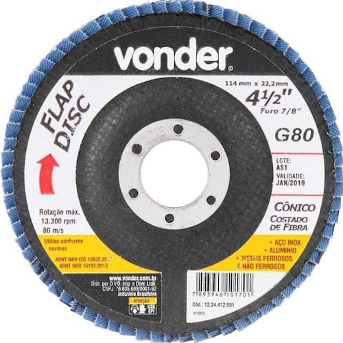 Diâmetro externo do disco de desbaste/ acabamento flap-disc: