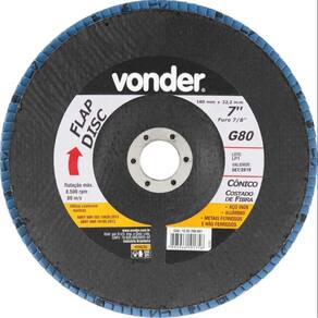 Conteúdo da embalagem1 Disco de desbaste/acabamento flap-discAplicações e dicas de usoIndicado para desbaste e acabamento em aço inox, alumínio, metais ferrosos e não ferrosos com esmerilhadeiras angularesDestaques e diferenciaisPermite atividades de desbaste e acabamento ao mesmo tempo, eliminando a troca de discos. Proporciona menor vibração e ruído comparado com o disco de desbaste convencional. Seu formato cônico permite um melhor aproveitamento do disco aumentando o rendimento. DETALHES TÉCNICOS Diâmetro externo do disco de desbaste/ acabamento flap-disc: 7 - 177 mm Diâmetro do furo do disco de desbaste/ acabamento flap-disc: 7/8 - 22,2 mm Grão: G 80 Tipo de costado: Fibra Tipo do perfil do disco de desbaste/acabamento flap-disc: Cônico Tipo do grão abrasivo: Óxido de zircônio Rotação máxima rpm : 8500 rpm Velocidade periférica: 80 m/s Norma de referência: ABNT NBR 15635 / ABNT NBR 16195 Marca: Não Informado