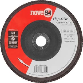 Disco de desbaste/acabamento, flap-disc, cônico, 7", grão 120, costado de fibra, NOVE54Aplicações e dicas de uso: