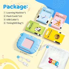 Cartões flash - Versão bilíngue atualizada: modo bilíngue chinês e inglês: este brinquedo de aprendizagem de cartas infantis inclui uma máquina de leitura de cartões de aprendizagem e 112 cartões de dupla face (224 palavras à vista). É adequado para meninos e meninas de 1 2, 3, 4 5 anos de idade. Melhora a capacidade cognitiva, exercita a audição e desenvolve vocabulário para crianças. Isso ajuda a melhorar efetivamente a memória e a concentração das crianças. - ?Torne o aprendizado de palavras divertido?Seu bebê dominará 224 palavras - 12 categorias diferentes de aprendizado, incluindo animais, veículos, alimentos, frutas, cores, vegetais, necessidades diárias, fantasias, natureza, pessoas, trabalhos e formas. Ótimos brinquedos de terapia da fala para crianças de 1 a 3 anos para introduzir ou reforçar as palavras visuais. Sem tela para melhor proteção ocular. Compre agora e deixe a criança largar seus celulares e iPads. - ?Fácil de usar?Ligue o interruptor, coloque o cartão no compartimento do leitor de cartões, o leitor de cartão pronunciará as palavras em chinês e inglês. Pressione o botão de repetição para repetir a pronúncia e o efeito sonoro. - ?Sem bolsa de armazenamento e tela fornecida?Este brinquedo educativo interativo não tem tela e pode manter as crianças longe de celulares e tablets, reduzindo o tempo de tela de forma eficaz. Uma bolsa de armazenamento TimingSXD está incluída para tornar mais conveniente manter os cartões organizados e levar em movimento. - ?Os ótimos presentes?Este brinquedo de aprendizagem é um presente perfeito para aniversário, Natal e outros feriados para meninas e meninos de 3, 4, 5, 6, 7 e 8 anos de idade. Brinque com as crianças juntas para se divertir com a família.