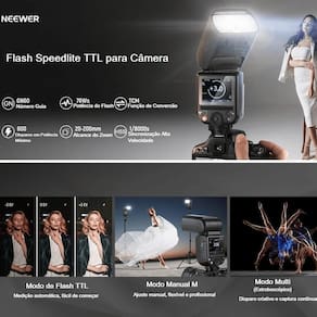 Se você fotografa com câmeras nikon e precisa de um flash speedlite confiável, rápido e potente, o flash speedlite neewer z880-n i-ttl com bateria recarregável inclusa pode ser um daqueles acessórios que viram companheiro fixo na mochila. Ele vem com sincronização de alta velocidade hss , suporte total ao sistema nikon i-ttl e ainda traz um transmissor sem fio de 2.4ghz integrado, o que facilita muito quando se trabalha com vários flashes ao mesmo tempo.Com um número guia 60 em iso 100 / 200mm , a luz que ele entrega é bem forte e consistente, ideal tanto para retratos quanto para ensaios em locais mais amplos. Este flash speedlite neewer z880n ttl para câmeras nikon possui temperatura de cor é equilibrada em 5600k 200k , próxima da luz do dia, deixando os tons mais naturais. Na parte traseira, a tela lcd hd iluminada ajuda a navegar nas funções sem complicação.Potência e rapidezeste flash speedlite para nikon companha um bateria neewer nb-z1 recarregável inclusa garante cerca de 600 disparos em potência máxima e um tempo de reciclagem de apenas 1.5s. Ou seja, você não perde momentos importantes entre um clique e outro. Possui uma porta usb para atualizações de firmware.Versatilidade na iluminaçãoa cabeça do flash neewer z880n inclina de -7 até 120 e gira 330, perfeita para rebater luz em paredes e tetos. Além disso, conta com uma luz led de modelagem com 10 níveis de intensidade para pré-visualizar a cena.Modos criativoso flash speedlite neewer z880 nikon trabalha nos modos ttl, manual e estroboscópico rpt . No ttl, você tem compensação de exposição de até 3 ev 19 níveis . No manual, o controle vai de 1/256 a 1/1 81 níveis . Já no rpt, dá pra programar até 100 disparos estroboscópicos a 199 hz. Também estão presentes os modos s1/s2 slave óptico , sincronização de 1 e 2 cortina e hss até 1/8000s.Sistema wireless neewer integradoo sistema sem fio neewer wireless 2.4g permite trabalhar como mestre ou escravo slave , com até 100m de alcance sem obstáculos. São 4 grupos mestre, 5 grupos escravo, 32 canais e 99 ids, o que garante estabilidade mesmo em ambientes cheios de fotógrafos usando rádio flash. Ele é compatível com os disparadores neewer qpro wireless vendidos separadamente .Compatibilidade ampla com nikoncâmeras nikon mirrorless e dslr compatíveis: z6, z7, z6ii, z7ii, d4, d5, d6, d60, d70s, d90, d100, d200, d300, d610, d700, d750, d780, d800, d850, d3100, d3200, d3300, d3400, d3500, d5000, d5100, d5200, d5300, d7100, d7500, entre outras.Obs. Não é compatível com a câmera nikon d810
