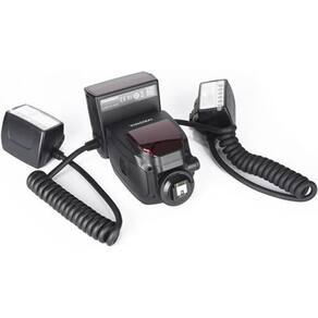 Flash yongnuo circular yn-24ex macro ring para sony Compatível com sony ttl Design de cabeça de flash duplo Número guia: 79' em iso 100 Cobertura: 90 vertical e horizontal Luz de assistência de foco automático led Modo de proporção; sincronização de 1 e 2 cortina Tempo de reciclagem: 3 segundos em potência máxima Funciona com quatro pilhas aa Anéis adaptadores de 52, 58, 67 e 72 mm