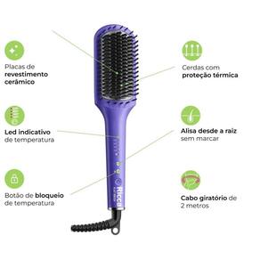 A Escova Alisadora Flat Brush Ricca é a solução perfeita para modelar e alisar os cabelos da raiz até as pontas, de forma uniforme e eficiente. Fácil e prática de usar, proporciona resultados impecáveis sem marcar os fios.SUGESTÃO DE USO:1- Lave e deixe seus cabelos secarem completamente antes de usar a escova alisadora.2- Escolha um protetor térmico da sua preferência para proteger os fios.3- Ligue a escova, selecione a temperatura desejada.4- Note que o led indicador da temperatura piscará até a temperatura chegar na opção desejada.5- O led indicador se manterá aceso quando a escova atingir a temperatura desejada e pronta para ser utilizada.6- Separe uma pequena mecha de cabelo e passe a escova suavemente da raiz às pontas, fazendo movimento de escovação para modelar.7- Evite pressionar a escova em um único lugar por muito tempo para evitar danos e marcações indesejadas ao fio de cabelo e ao couro cabeludo.8- Repita o processo em todas as mechas até alcançar o visual desejado.CARACTERÍSTICAS:- Tecnologia Flat Liss- Cerdas Espaçadas- Led Indicativo de Temperatura Com 4 opções de temperaturas: 160°C, 180°C, 200°C e 220°C- Bivolt- Cabo de 2 metrosINFORMAÇÕES ADICIONAIS:Tecnologia Flat Liss:Placas com acabamento cerâmico com controle de temperatura: Não danifica os fios e facilita o processo de alisamentoCerdas Espaçadas:Deslizam uniformemente pelo cabelo, alisando da raiz as pontas.