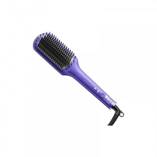 Flat Brush Escova Alisadora 4 Temperaturas Bivolt Ricca A Escova Alisadora Flat Brush Ricca é a solução perfeita para modelar e alisar os cabelos da raiz até as pontas, de forma uniforme e eficiente. Fácil e prática de usar, proporciona resultados impecáveis sem marcar os fios.SUGESTÃO DE USO:1- Lave e deixe seus cabelos secarem completamente antes de usar a escova alisadora.2- Escolha um protetor térmico da sua preferência para proteger os fios.3- Ligue a escova, selecione a temperatura desejada.4- Note que o led indicador da temperatura piscará até a temperatura chegar na opção desejada.5- O led indicador se manterá aceso quando a escova atingir a temperatura desejada e pronta para ser utilizada.6- Separe uma pequena mecha de cabelo e passe a escova suavemente da raiz às pontas, fazendo movimento de escovação para modelar.7- Evite pressionar a escova em um único lugar por muito tempo para evitar danos e marcações indesejadas ao fio de cabelo e ao couro cabeludo.8- Repita o processo em todas as mechas até alcançar o visual desejado.CARACTERÍSTICAS:- Tecnologia Flat Liss- Cerdas Espaçadas- Led Indicativo de Temperatura Com 4 opções de temperaturas: 160C, 180C, 200C e 220C- Bivolt- Cabo de 2 metrosINFORMAÇÕES ADICIONAIS:Tecnologia Flat Liss:Placas com acabamento cerâmico com controle de temperatura: Não danifica os fios e facilita o processo de alisamentoCerdas Espaçadas:Deslizam uniformemente pelo cabelo, alisando da raiz as pontas.