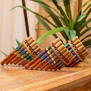 Flauta de Pã 8 Tubos Colorida Importada de Bali Flauta de Pã 8 Tubos Importada de Bali A Flauta de Pã é um instrumento musical de sopro constituído por um conjunto de tubos fechados numa extremidade, ligados uns aos outros. Possui diferentes nomes em todo o mundo. Dependendo de onde foi construída pode possuir diferentes tamanhos, notas e tipos de canas. A música é a essência de Bali, muito utilizada em suas manifestações artísticas. O som se faz presente de muitas formas e em muitos rituais. os instrumentos musicais são produzidos com viés artístico, são artesanais e geralmente com pinturas coloridas com a técnica aborígene de pontilhados dots , característica dos nativos australianos, que habitam grande parte do território do país. A Flauta de Pã Balinesa possui 8 tubos e é feita de bambu. Ela pode, também, ser Utilizado como peça decorativa. Material: bambu Cor Predominante: Colorido Peso: aproximadamente 70g Largura: 11cm Altura: 16,5cm Profundidade: 1cm Origem: bali O produto é artesanal, fabricado e de Bali e por isso pode apresentar pequenas variações de cor, tonalidade, brilho, peso e tamanho. Não deixe a sua peça em contato prolongado com a água, a não ser que seja peça que possa ser exposta ao sol e chuva. As fotos são ilustrativas. Qualquer produto adicional utilizado na composição das fotos deve ser comprado separadamente. Marca: Não Informado