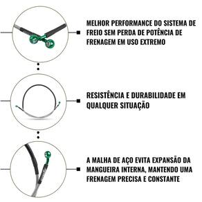 Fabricado em malha de aço inox trançada de alta resistência com conectores em epóxi, mantendo a estabilidade do sistema de freio mesmo com uso intenso.