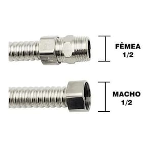 Características técnicas - detalhes técnicos Material: cobre cromado. Comprimento: 40 cm. Medida rosca bsp: 1/2 macho. Medida rosca bsp: 1/2 fêmea. Diâmetro interno: 11 mm. Pressão de trabalho: 4 kgf/cm à 20c. Temperatura máxima de trabalho: 80c.