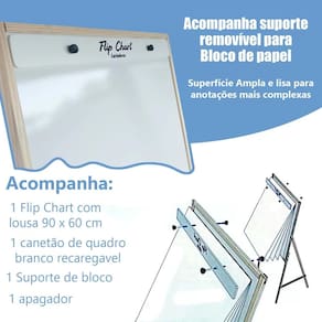 Flip chart quadro branco madeira 60 x 90 apagador caneta