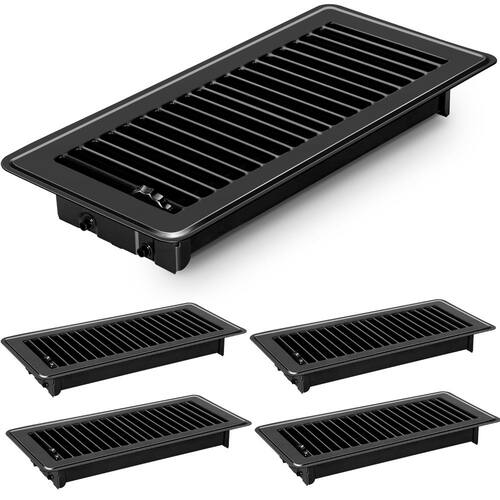 4 peças de registro de piso de 4 x 12 polegadas, tampas de ventilação de piso de 4 x 12 polegadas, tampas de ventilação para teto de parede de piso doméstico, tampa de ventilação de registro de metal, registros à prova de ferrugem, grades e aberturas de ventilação (4, pretas, 4 x 12 polegadas)