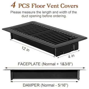 - Registros de piso de 4 peças: você receberá 4 unidades de ventilação de piso de 4x12 polegadas. Se você deseja atualizar a aparência da sua casa ou adicionar uma cobertura de ventilação prática ao duto de ar, nosso registro de piso pode atender facilmente às suas necessidades diárias de uso e substituição.