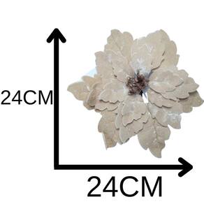 A Flor Natalina Aveludada Sônia é o toque final perfeito para sua decoração de Natal. Com seu acabamento aveludado e tom suave de champagne, ela adiciona elegância e sofisticação ao ambiente. Seja na árvore de Natal ou em arranjos, essa flor decorativa traz um toque de luxo à sua casa.