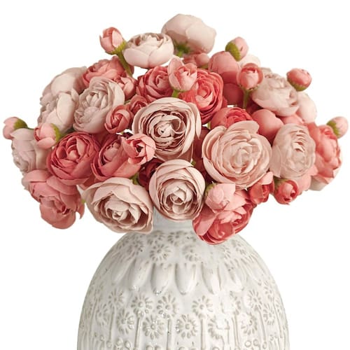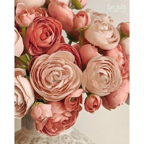 Flor artificial Letjolt Ranunculus 18 peças de seda rosa