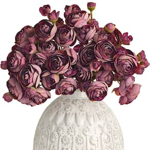 Letjolt Flor artificial de ranúnculo - O pacote inclui 18 peças de flores de ranúnculo, cada ranúnculo tem quatro flores - duas flores desabrochando e dois pequenos botões de flores. - Material: As flores de ranúnculo são feitas de seda e as hastes são feitas de plástico. - Perfeito para casamentos e noivado, o lindo ranúnculo é a escolha ideal como flores de enchimento para buquês, centros de mesa etc. - Arranjos florais DIY: flores realistas com hastes de arame dobráveis e cortáveis, flores de ranúnculo são adequadas como flores complementares para buquês parecerem mais cheios, crie seu próprio buquê exclusivo. - O ranúnculo também pode ser utilizado como decoração de casa, é muito bonito tanto no vaso quanto no cesto de flores.