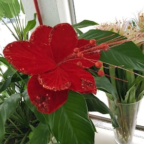 Material: Veludo, EPS, Arame e Glitter;Peso: 52grCor: Vermelha;Conteúdo da Embalagem: 1 Flor Artificial Vermelha;Haste: 45cmDiâmetro da Flor: 27cm