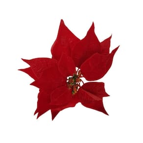 Flor Artificial Natalina Poinsétia Vermelha (Espirito Santo), confeccionada em veludo e glitter, haste de arame revestido com 27cm de comprimento e prendedor na ponta .