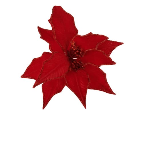 Flor Artificial Natalina Poinsétia Vermelha (Espirito Santo), confeccionada em veludo e Glitter, haste de arame revestido com 21cm de comprimento.