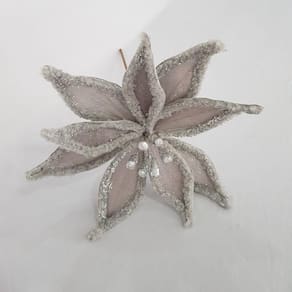 Material: Veludo, Pelucia, EPS, Arame e Glitter;Peso: 54grCor: ;Prata;Conteúdo da Embalagem: 1 Flor Artificial Prata;Haste: 47cmDiâmetro da Flor: 30cm