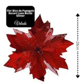 Transforme sua decoração de fim de ano em um espetáculo de luxo e brilho com esta flor bico de papagaio vermelha recortada com glitter – o detalhe que faltava para elevar sua árvore e composições natalinas.