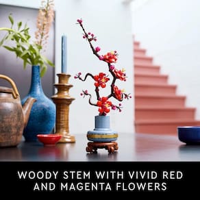 Tire um tempo com o conjunto de construção de decoração floral LEGO® Icons Flor de Ameixeira (10369) para adultos. A flor de ameixeira é um tema popular na arte tradicional, geralmente retratada em pinturas de sumi-ê como parte de um quarteto clássico de lindas plantas conhecidas como as Quatro Nobres. Deleite-se com um projeto de construção consciente ou agrade uma pessoa querida com esta exposição floral atemporal, uma ideia de presente perfeita para qualquer ocasião. Esta réplica detalhada captura a elegância da icônica flora de inverno com seu caule amadeirado e flores vermelhas e magentas vívidas. Inserida em um vaso de flores azul pastel com uma faixa dourada e uma base de efeito madeira, é fácil de montar, garante uma experiência de construção gratificante e é uma exposição floral linda e fácil de cuidar para o lar ou escritório. Descubra um espaço para relaxar com modelos para construir da Coleção Botânica LEGO, parte de uma linha inspiradora de projetos de construção LEGO feita para adultos. Uma versão digital das instruções de construção está disponível no aplicativo LEGO Builder.