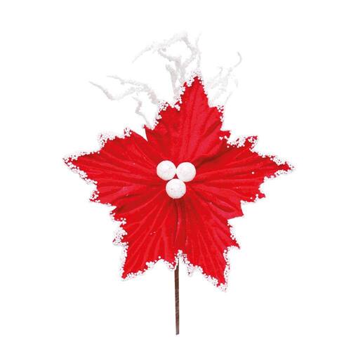 Poinsetia vermelha - Cor Predominante: VERMELHO - Materia Prima: 75% Poliéster, 15% Plástico, 5% Papel e 5% Metal - Instruções de Limpeza: Limpar apenas com pano macio e seco. - Destaques: Porque nenhuma decoração de Natal tradicional é completa sem poinsétias! Para dar um toque final ou até mesmo em grande quantidade para conseguir um efeito UAU, estas lindas flores são essenciais!