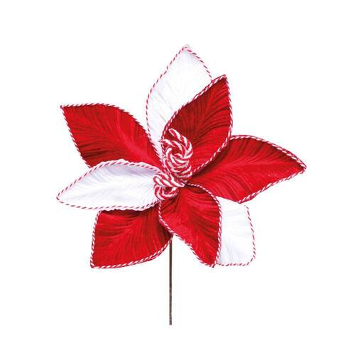 Poinsetia vermelha e branca - Cor Predominante: VERMELHO / BRANCO - Materia Prima: 80% Poliéster, 10% Papel e 10% Metal - Instruções de Limpeza: Limpar apenas com pano macio e seco. - Destaques: Porque nenhuma decoração de Natal tradicional é completa sem poinsétias! Para dar um toque final ou até mesmo em grande quantidade para conseguir um efeito UAU, estas lindas flores são essenciais!
