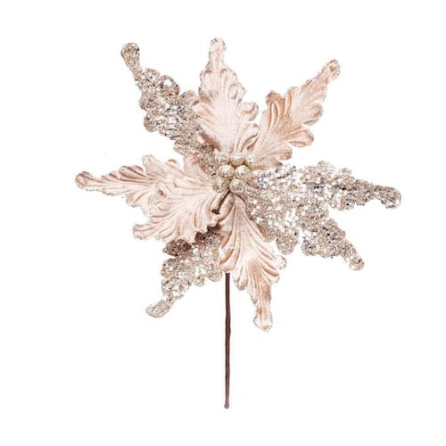 Poinsetia nude - Cor Predominante: NUDE - Materia Prima: 80% Poliéster, 10% Papel e 10% Metal - Instruções de Limpeza: Limpar apenas com pano macio e seco. - Destaques: Porque nenhuma decoração de Natal tradicional é completa sem poinsétias! Para dar um toque final ou até mesmo em grande quantidade para conseguir um efeito UAU, estas lindas flores são essenciais!