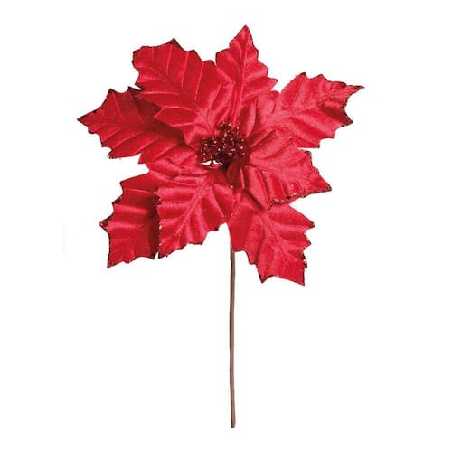 Poinsetia vermelha - Cor Predominante: VERMELHO - Materia Prima: 75% Poliéster, 15% Plástico, 5% Papel e 5% Metal - Instruções de Limpeza: Limpar apenas com pano macio e seco. - Destaques: Porque nenhuma decoração de Natal tradicional é completa sem poinsétias! Para dar um toque final ou até mesmo em grande quantidade para conseguir um efeito UAU, estas lindas flores são essenciais!