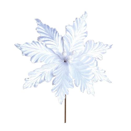 Poinsetia branca - Cor Predominante: BRANCO - Materia Prima: 60% Poliéster, 30% Plástico, 5% Papel e 5% Metal - Instruções de Limpeza: Limpar apenas com pano macio e seco. - Destaques: Porque nenhuma decoração de Natal tradicional é completa sem poinsétias! Para dar um toque final ou até mesmo em grande quantidade para conseguir um efeito UAU, estas lindas flores são essenciais!